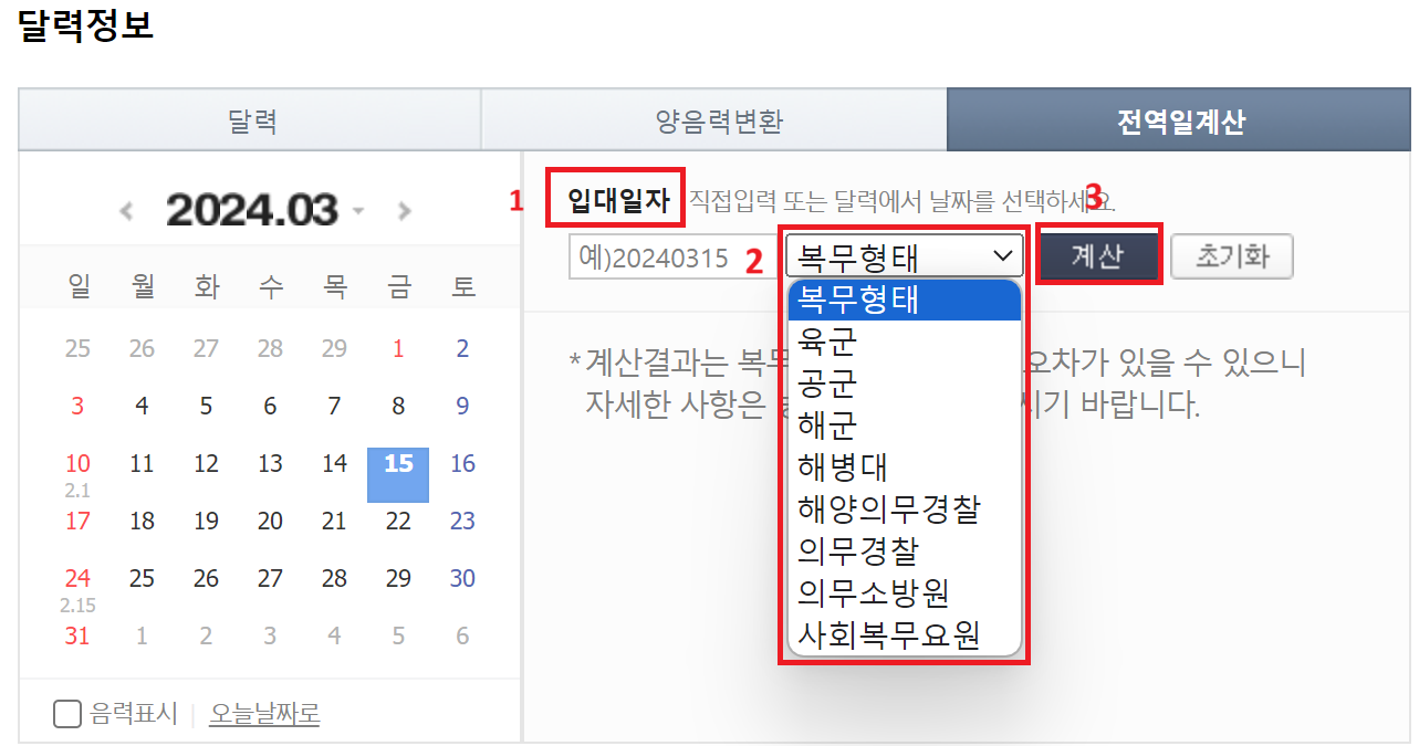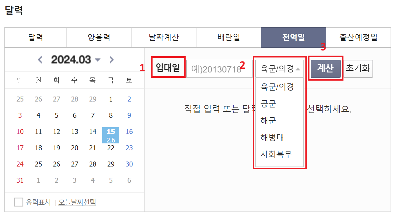 1. 전역일 계산기에 접속합니다.