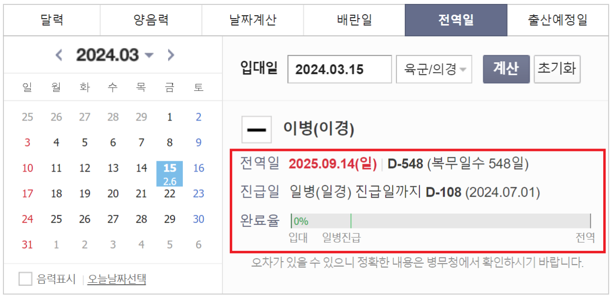전역일 계산기