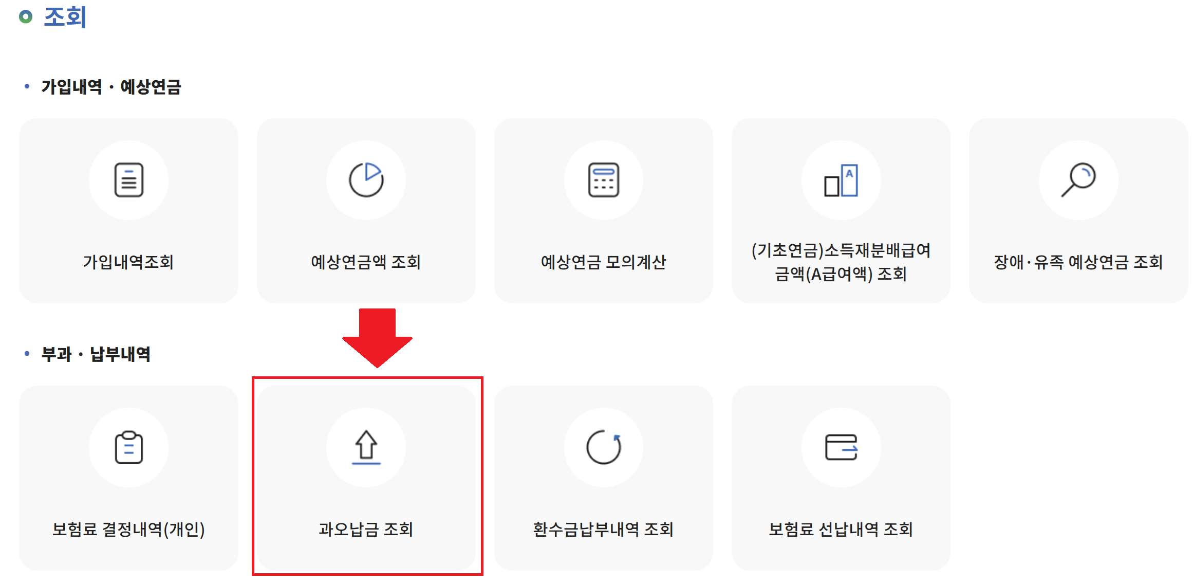 로그인하기 → 내 연금 알아보기 → 부과 납부내역 → 과오납금 조회