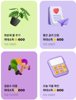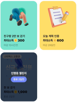 챌린지는 누구나 일상생활 속에서 쉽게 참여할 수 있는 다양한 챌린지가 있습니다. 매주 지급되는 3,000포인트로 앱에서 진행 중인 챌린지를 선택하여 참여하시면 됩니다. 챌린지 목표를 달성하면 코인이 지급됩니다.
