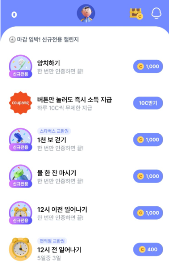 챌린지 중에서 스타벅스 쿠폰, 편의점 교환권, 맘스터치 쿠폰 등 추가 쿠폰을 추첨하여 지급하는 이벤트가 있습니다.