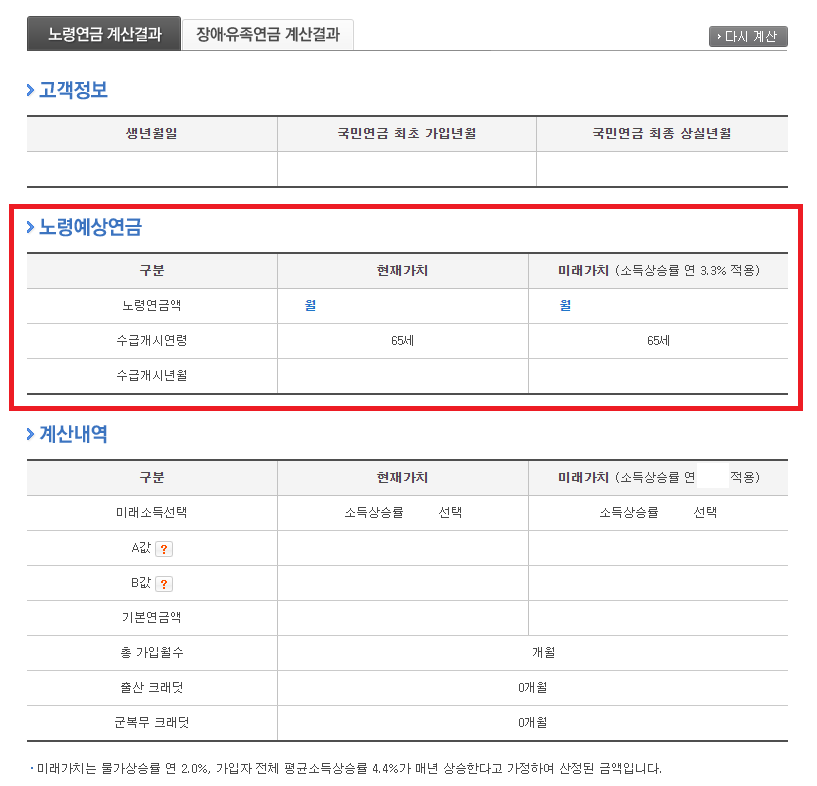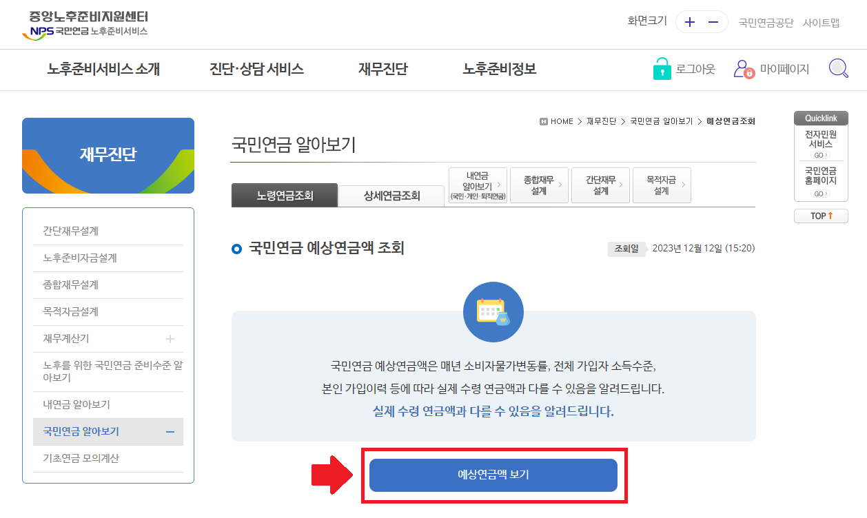 3. 예상연금액 조회 클릭