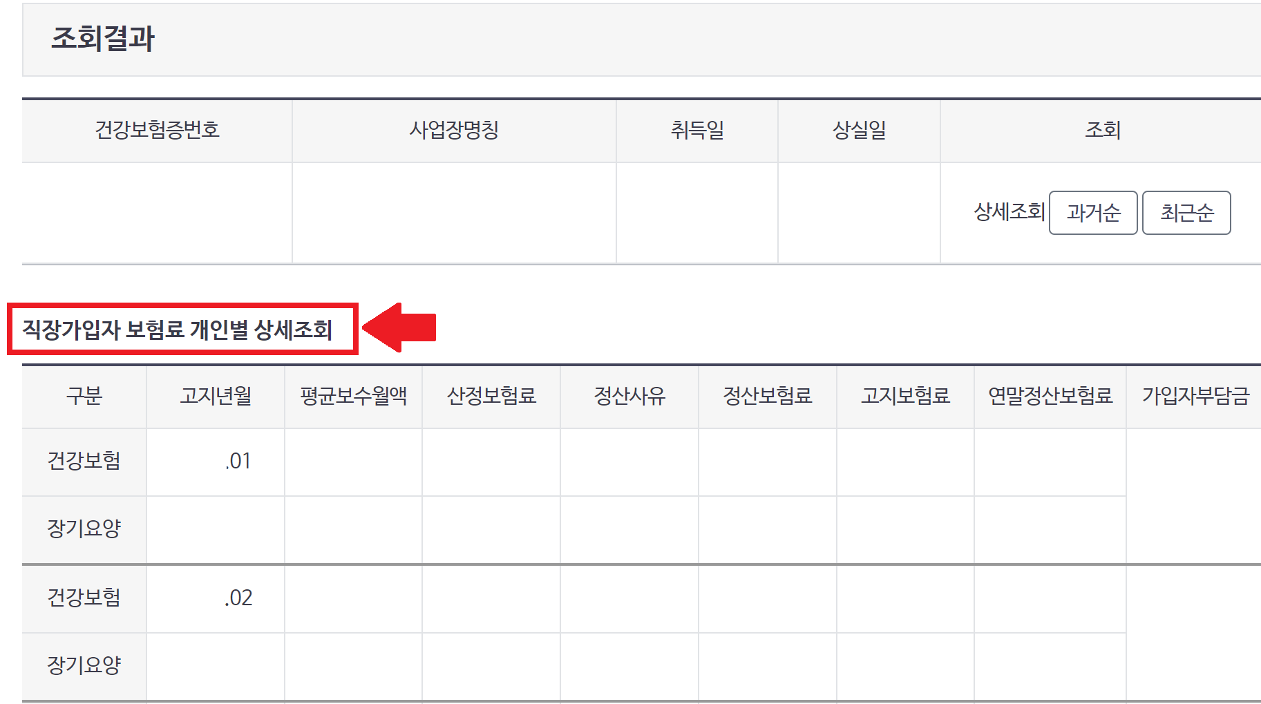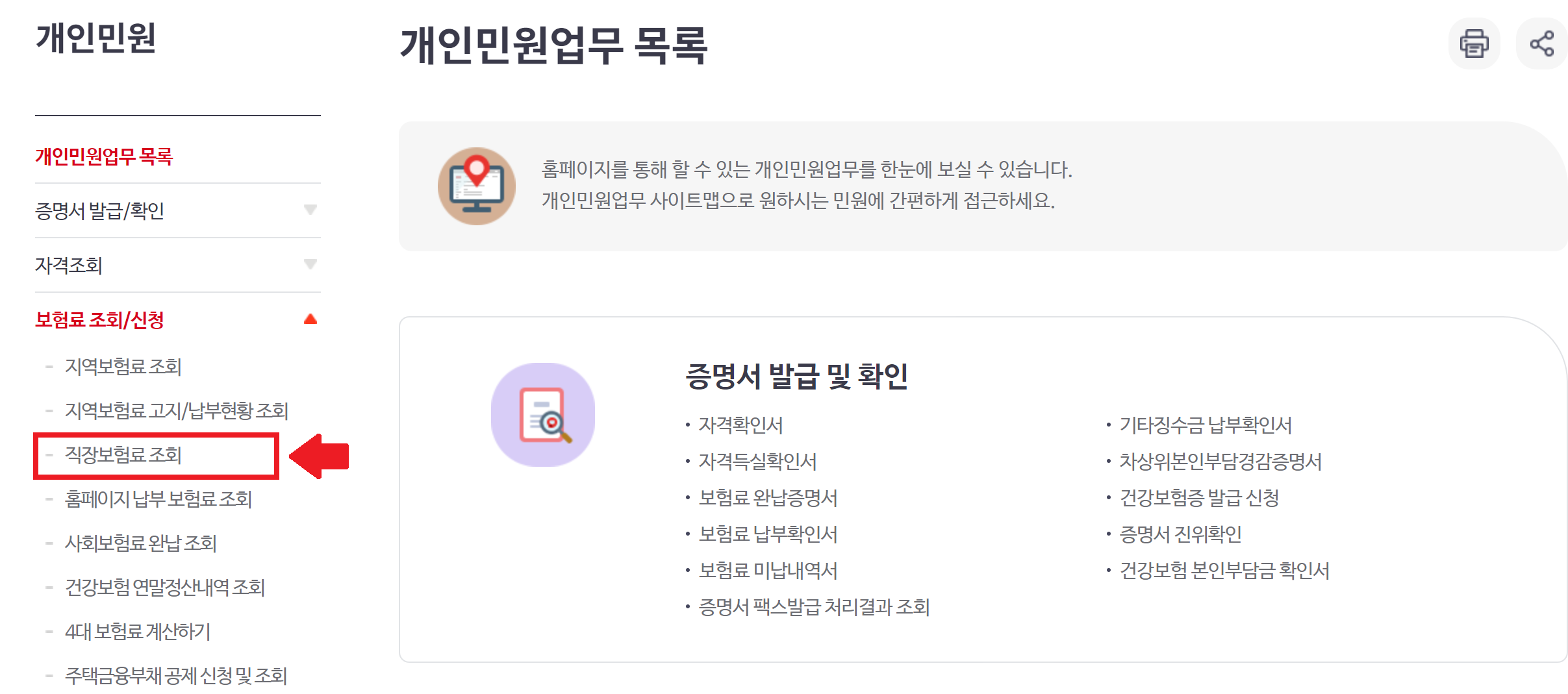 | 국민건강보험 홈페이지 | 직장인 | 직장보험료 조회 |