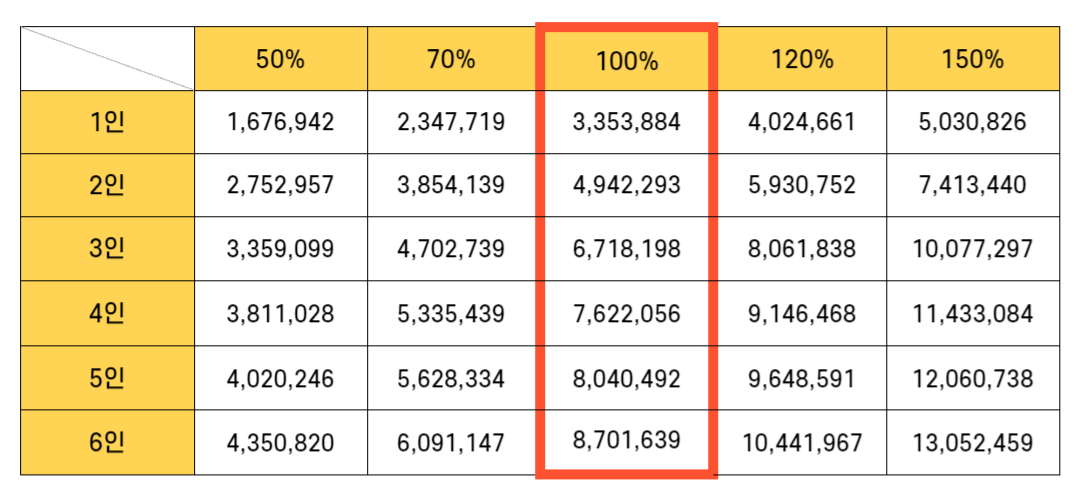 ※ 월평균 소득금액은 세대를 구성하는 구성원 전체의 평균소득액을 세전으로 합친 것입니다.
